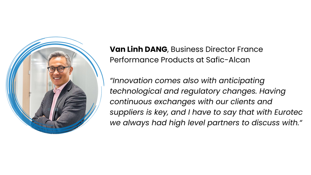 Van Linh DANG : We were very well established in the market for additives and polymers for masterbatches and compounds manufacturers,  providing top-notch technical support, a reliable and responsive supply chain, and sustainable commercial support. But we were eager to extend those benefits to plastic converters. Five years ago, Reha took a bet on us as the challenger in this field, and I must say that our partnership is bearing fruit, but there is still much to do!  Eurotec is the key partner for our business development with thermoplastic converters in France. We share the same desire to serve customers based on trust and a long-term vision. Our respective abilities to provide tailored and innovative solutions are crucial.
