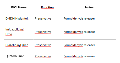 Which formaldehyde-releasing preservatives are commonly used in cosmetics?